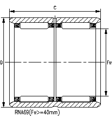 | RNA 69 | 無內(nèi)圈滾針軸承,尺寸系列69,雙列(單列至RNA 6906) |